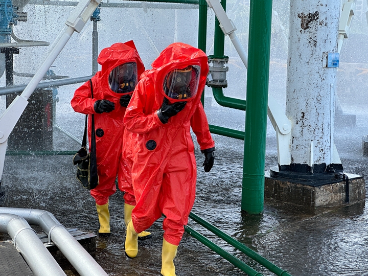 演練在中油王港公司的1號氣庫區(qū)域,由于設(shè)備老化,導(dǎo)致1#球罐液化石油氣進罐閥門泄漏,泄漏的液化石油氣迅速揮發(fā),在1#球罐區(qū)域形成大量可燃氣體,一旦遇上火花就會發(fā)生火災(zāi)爆炸,情況萬分危急。14時38分,巡檢人員在現(xiàn)場發(fā)現(xiàn)泄漏,第一時間向值班經(jīng)理報告;值班經(jīng)理立即啟動了班組應(yīng)急預(yù)案,并同步上報公司領(lǐng)導(dǎo)及安全環(huán)保部。應(yīng)急搶險人員迅速穿戴好專業(yè)防護裝備,攜帶搶險工具抵達泄漏現(xiàn)場。在做好自身安全防護的前提下,關(guān)閉泄漏上下游閥門,切斷氣源,阻止液化石油氣的進一步泄漏;利用消防水槍、水炮對泄漏區(qū)域進行噴水稀釋,降低可燃氣體的濃度,防止發(fā)生爆炸。在整個搶險過程中,搶險人員嚴格遵循操作規(guī)程,確保操作安全、高效,演練取得了圓滿成功。 演練結(jié)束后,中油王港公司立即組織召開了演練總結(jié)評估會。公司領(lǐng)導(dǎo)對此次演練給予了充分肯定,認為演練組織嚴密、指揮得當、響應(yīng)迅速、處置有效,達到了預(yù)期的演練目的,同時,也指出了演練過程中存在的一些不足之處,如個別應(yīng)急救援人員對應(yīng)急設(shè)備的操作不夠熟練、信息溝通還不夠順暢等,要求公司安全、生產(chǎn)部門針對這些問題制定整改措施,進一步完善應(yīng)急處置方案,加強應(yīng)急培訓(xùn)和演練,不斷提升公司的應(yīng)急處置能力。(通訊員:黎 強) |